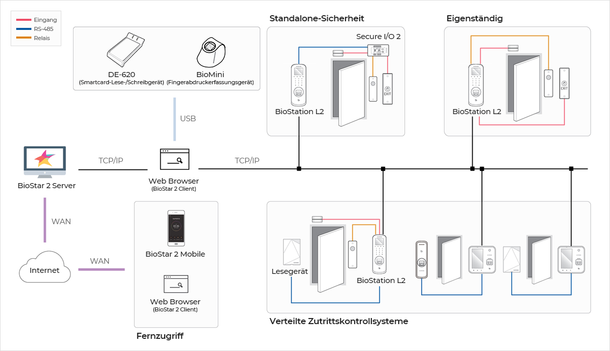 1)DESFire EV2/EV3-Karten werden durch die Abwärtskompatibilität zu DESFire EV1-Karten unterstützt. Die CSN- und Smartcard-Funktionen sind mit der BioStation L2 kompatibel.