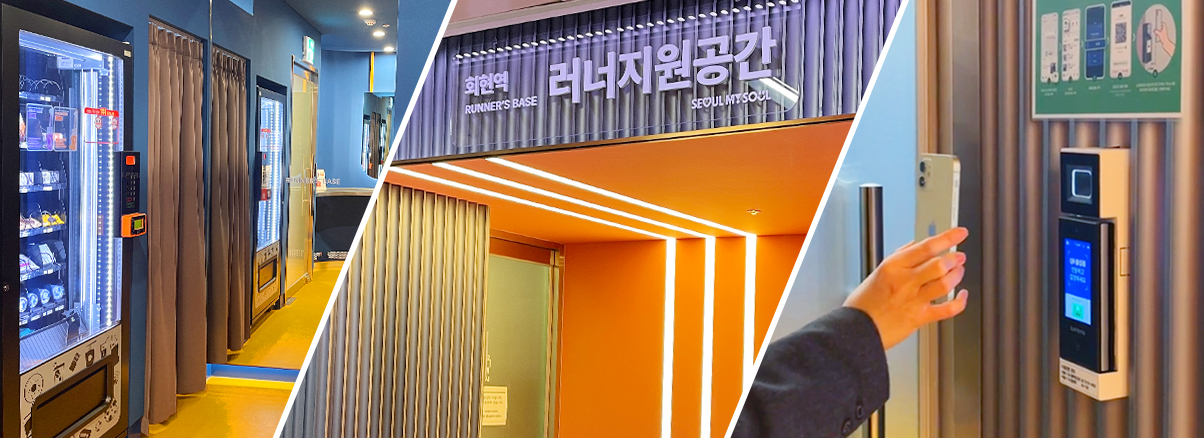 서울시 러너지원공간은 러너들의 접근성을 극대화하기 위해 ▴광화문역(5호선) ▴회현역(4호선) ▴월드컵경기장역(6호선) 역사 내에 조성됐다. 탈의실, 짐 보관함, 파우더룸 등 운동 전후 필요한 시설과 러닝용품 자동판매기를 갖추고 있으며, 지하철 운행 시간에 맞춰 매일 오전 5시 30분부터 오후 11시까지 시민 누구나 무료로 이용할 수 있다.